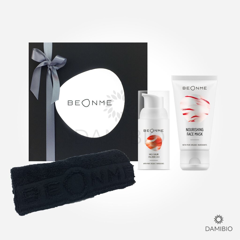 Dárková sada pro suchou a namáhanou pleť. Vitaminové pleťové sérum BeOnMe s kyselinou hyaluronovou a výživná pleťová maska se svou hedvábnou strukturou se navzájem doplňují a nabízejí přirozenou vitalitu a energetickou podporu suché a matné pokožce. Sada také obsahuje ručníček na odličování z bavlny BeOnMe, který jemně odstraňuje make-up.
