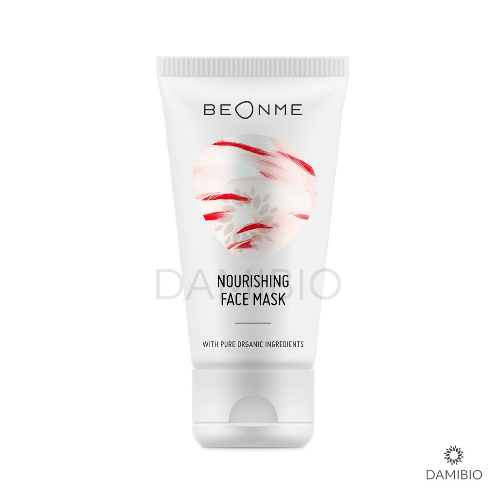 BeOnMe NOURISHING FACE MASK se vyrábí s výběrem přírodních organických olejů a extraktů, které poskytují vaší pokožce a krku hlubokou výživu, přičemž osvětlují vaši pleť a zanechávají pokožku jemnou a hladkou. Jeho antioxidační směs organického olivového oleje, tokoferolu (vitamín E) a organického extraktu goji snižuje produkci volných radikálů, které jsou odpovědné za předčasné stárnutí pokožky, a zároveň bojuje proti vráskám a podporuje buněčný metabolismus pro oživení a pružnost. Hydrosol z květu organické damašské růže je velmi uklidňující, omezuje rozšířené póry a oživuje vaši pokožku. Kamelinový olej, který je bohatý na omega 3 a 6, má silné regenerační a korekční vlastnosti a je zvláště užitečný pro suchou, vystresovanou pokožku, zatímco přidávání oxidu zinečnatého, který se často vyskytuje v přípravcích pro péči o pleť pro děti k léčbě vyrážky, usnadňuje regeneraci lipidové vrstvy pokožky, protože chrání a snižuje zánět a zarudnutí.