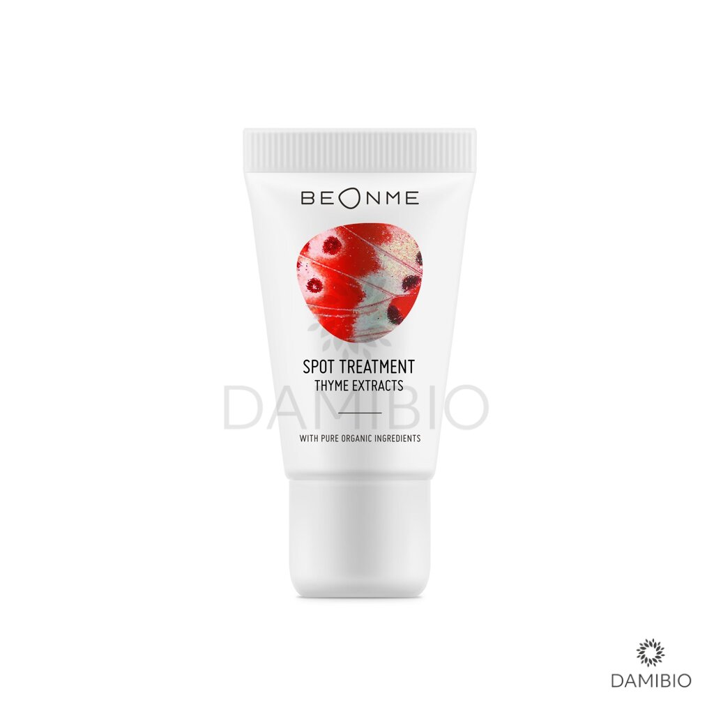BeOnMe SPOT TREATMENT je účinné ošetření nečistot pokožky. Je založen na organickém aloe gelu, který je již dlouho známý svými léčivými, uklidňujícími účinky a také proti zarudnutí. Je to účinný prostředek svými přírodními organickými extrakty. Tyto extrakty zahrnují tymián, který je bohatý na flavonoidy a taniny a má stahující, osvěžující a čistící vlastnosti. BeOnMe SPOT TREATMENT je obohacen o glukonolakton, který se často vyskytuje v přípravcích proti vráskám a který podporuje zlepšování tónů pleti, působí zejména na vady zbarvení způsobené akné nebo skvrnami způsobenými sluncem. Přidání oleje z čajovníku propůjčuje mimořádnou antibakteriální a dezinfekční sílu a podporuje přirozenou obnovu buněk. Díky praktickému aplikátoru je snadné aplikovat produkt na jednotlivá místa a okamžitě si všimnete účinků jeho přírodních extraktů. Bez alkoholu a bez vůně.