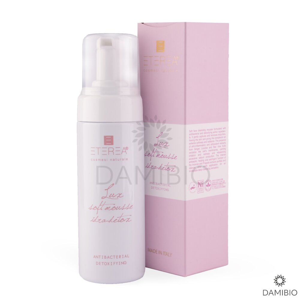Zbavte svou pleť nečistot pomocí jemné čistící pěny Eterea na obličej s antibakteriálním a detoxikačním účinkem. Pěna jemně zachycuje a odstraňuje nečistoty, uvolňuje pokožku a dodává pokožce extrémní jemnost a zář. Vysoká koncentrace BIO extraktů ze zázvoru, lékořice a červené révy má na pleť protizánětlivé a antioxidační účinky, revitalizuje buněčné membrány a podporuje její okysličení. Tím dochází k uklidnění podráždění a zarudnutí, navíc zanechává pokožku extrémně jemnou. Pěna účinně a jemně eliminuje toxiny uložené v pleti během dne v důsledku znečištění životního prostředí. Zvláčňuje, zužuje póry a přináší úlevu po hlubokém čištění pleti. Je tak tím nejlepším řešením, jak se postarat o každodenní očistu pleti, zvláště, pokud pleť trápí akné.